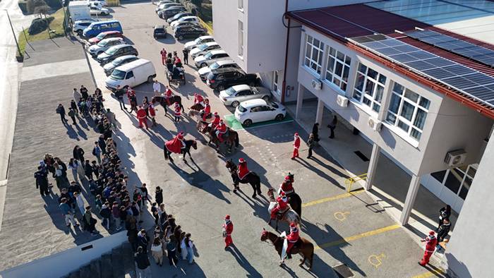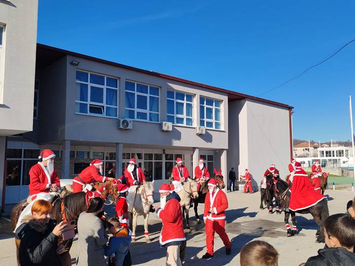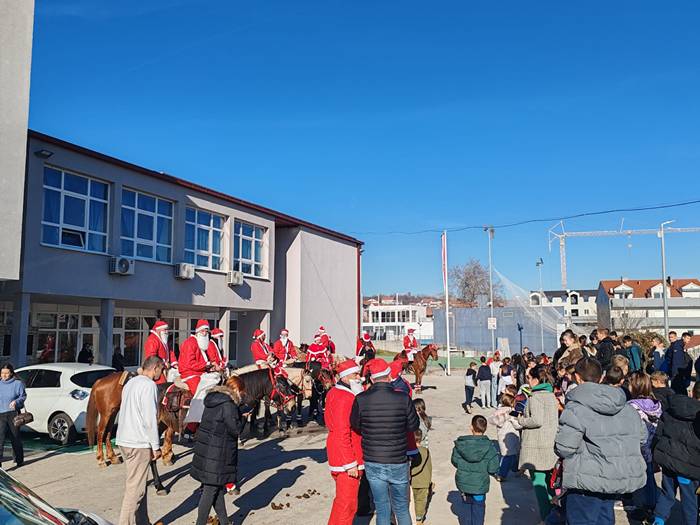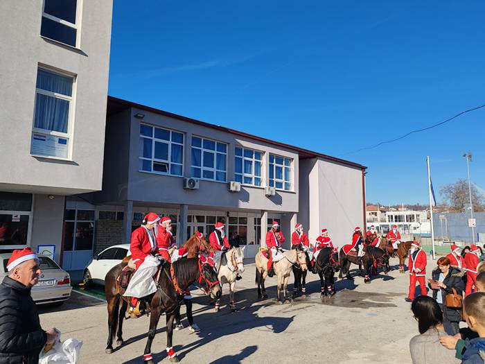 Članovi KK Samarica, predvođeni Marijom Vujevićem Vegijem, dijelili su darove i uveseljavali učenike OŠ Marko Marulić u Sinju u programu “Konjička karavana djeda Božićnjaka kroz grad Sinj”.